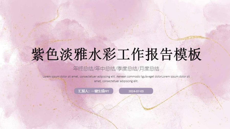 紫色淡雅水彩工作报告模板