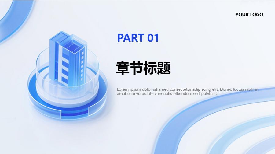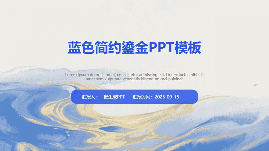 蓝色简约鎏金PPT模板