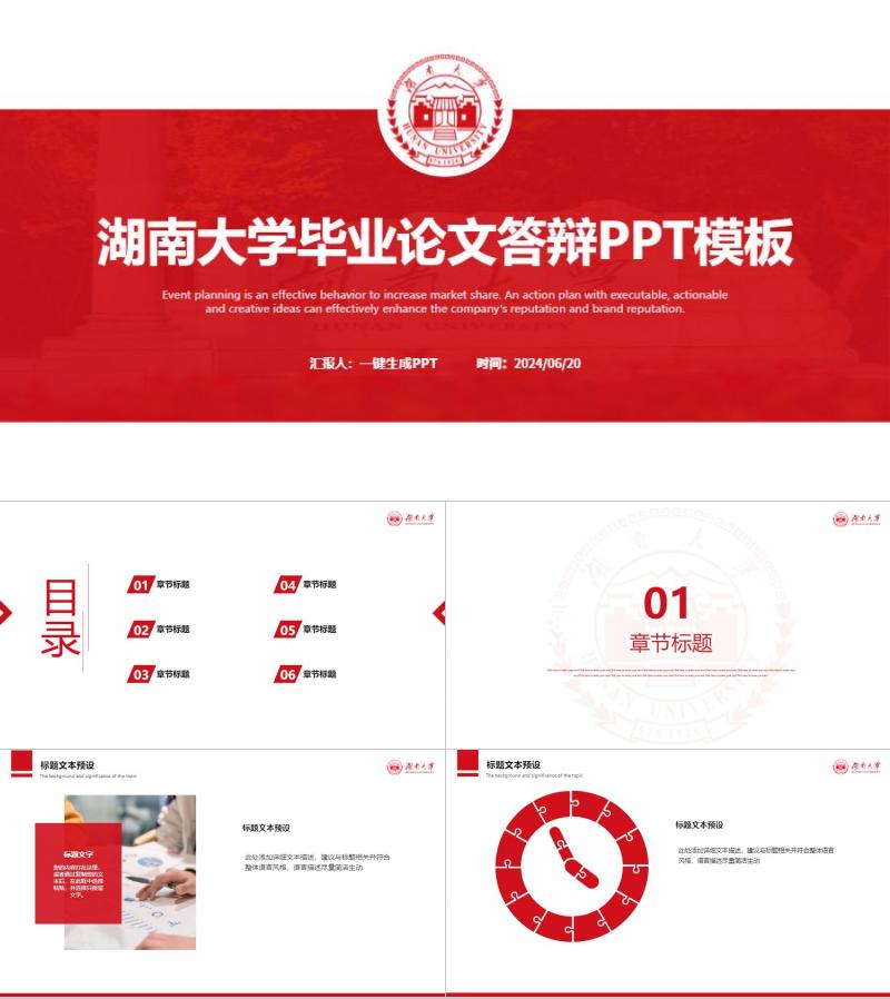 湖南大学毕业论文答辩PPT模板