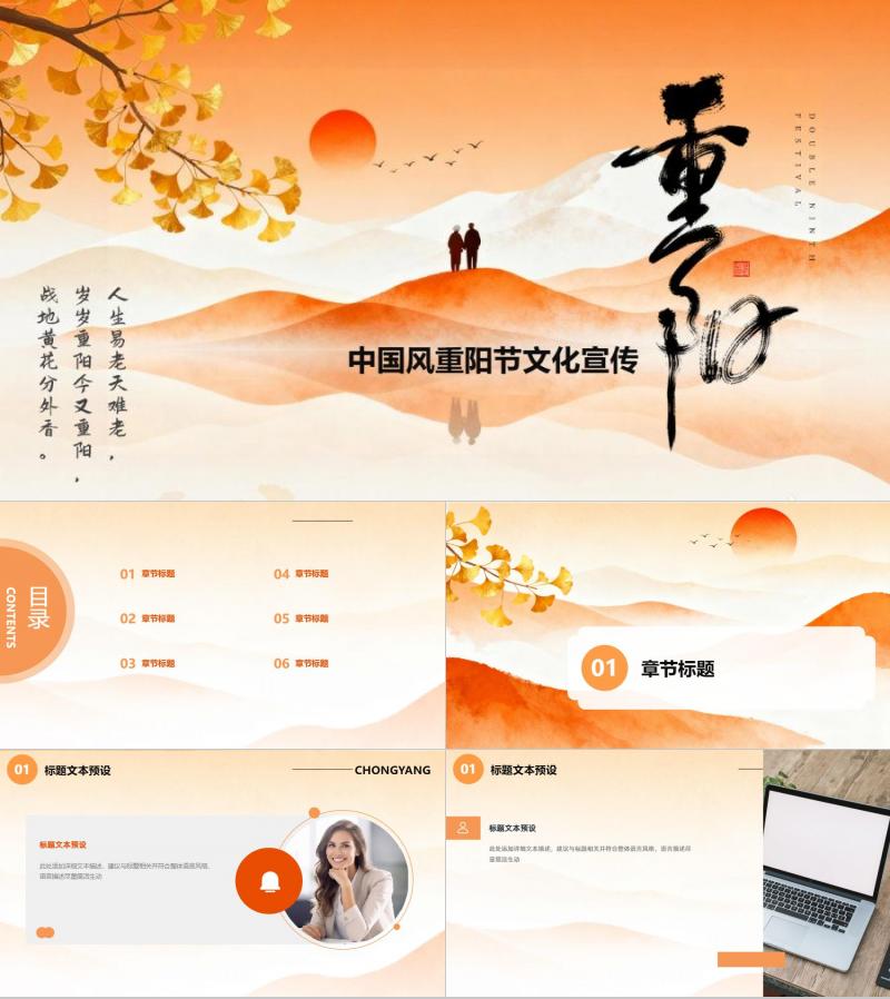 橙色中国风重阳节文化宣传模板