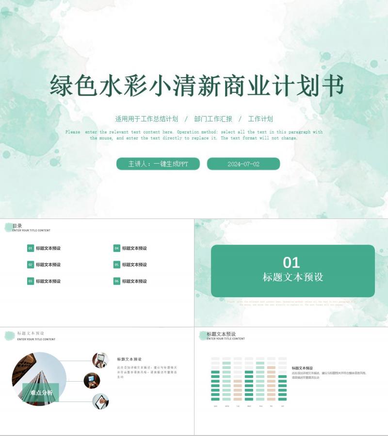 绿色水彩小清新商业计划书