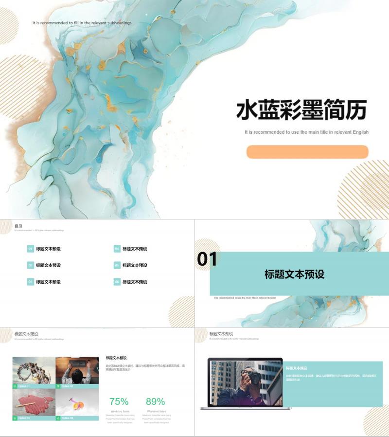 水蓝彩墨简历