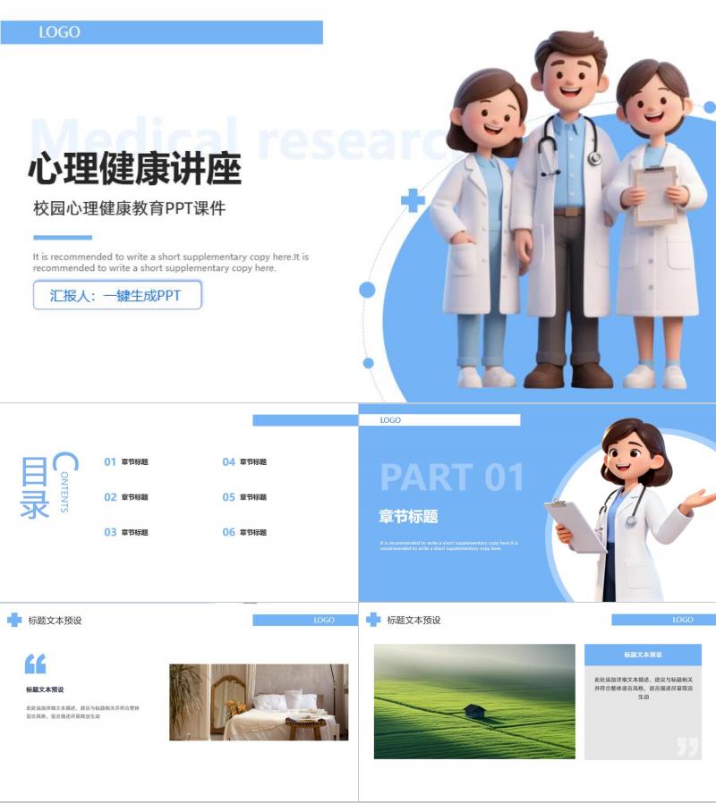蓝色心理健康讲座模板
