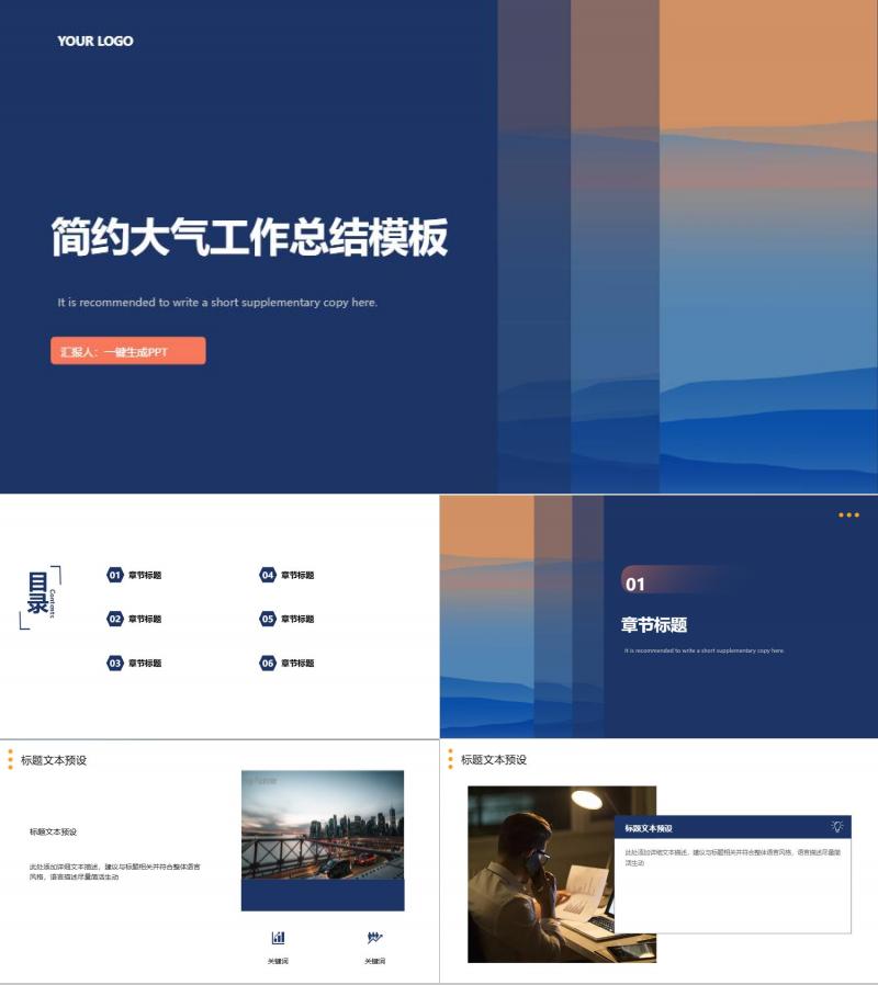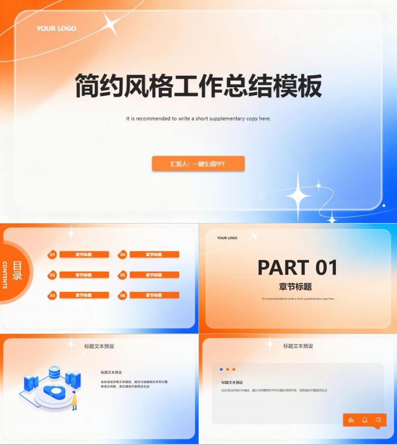 蓝橙色简约大气工作总结模板