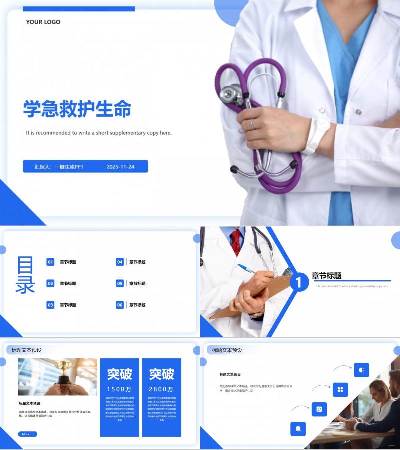 蓝色医疗护理模板