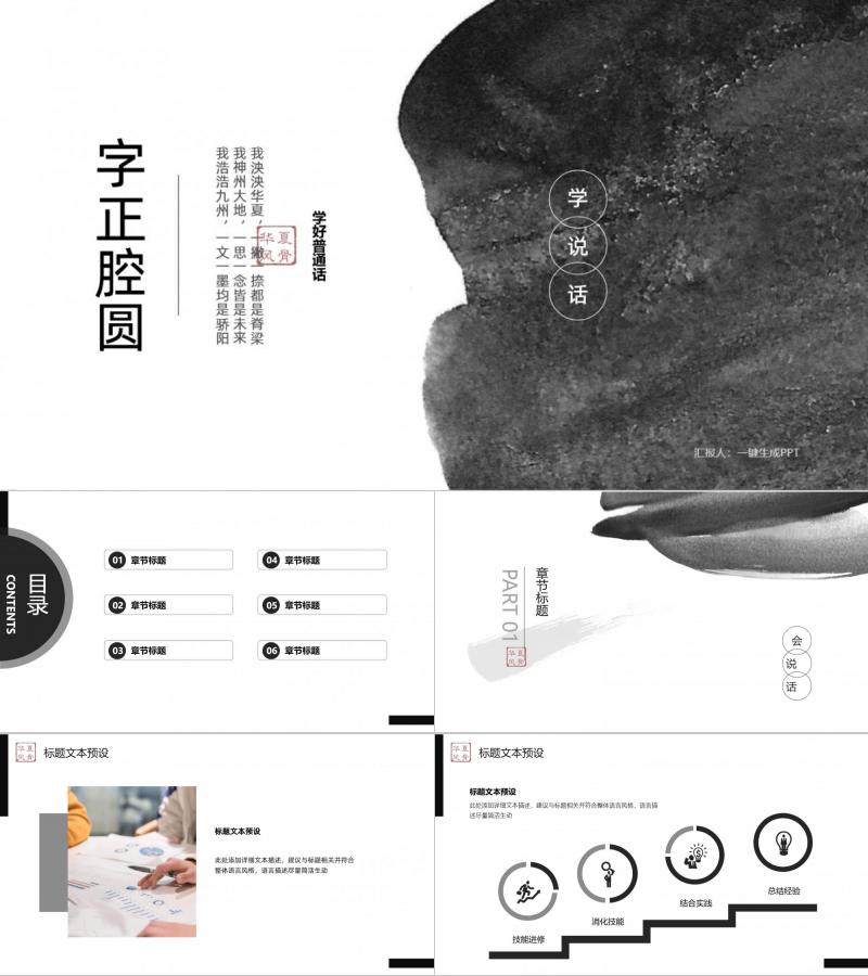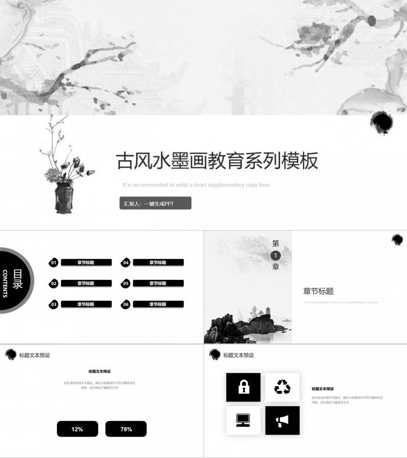 深色古风水墨画教育系列模板