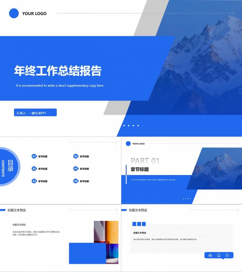 蓝色简约年终工作总结/工作汇报/产品总结报告