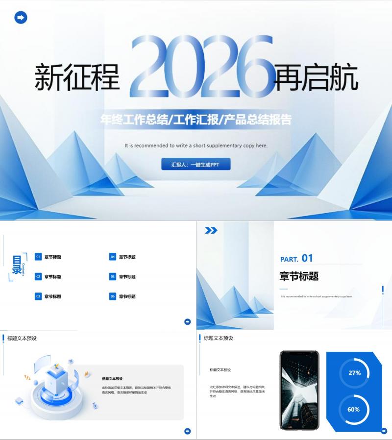 蓝色年终工作总结/工作汇报/产品总结报告