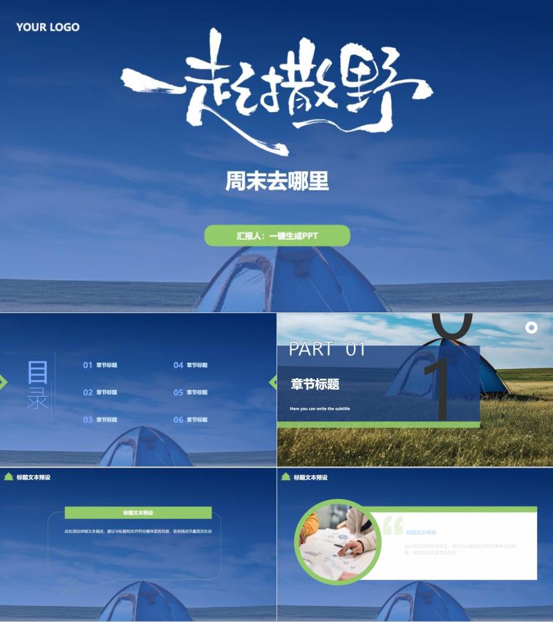 蓝色帐篷露营旅游模版