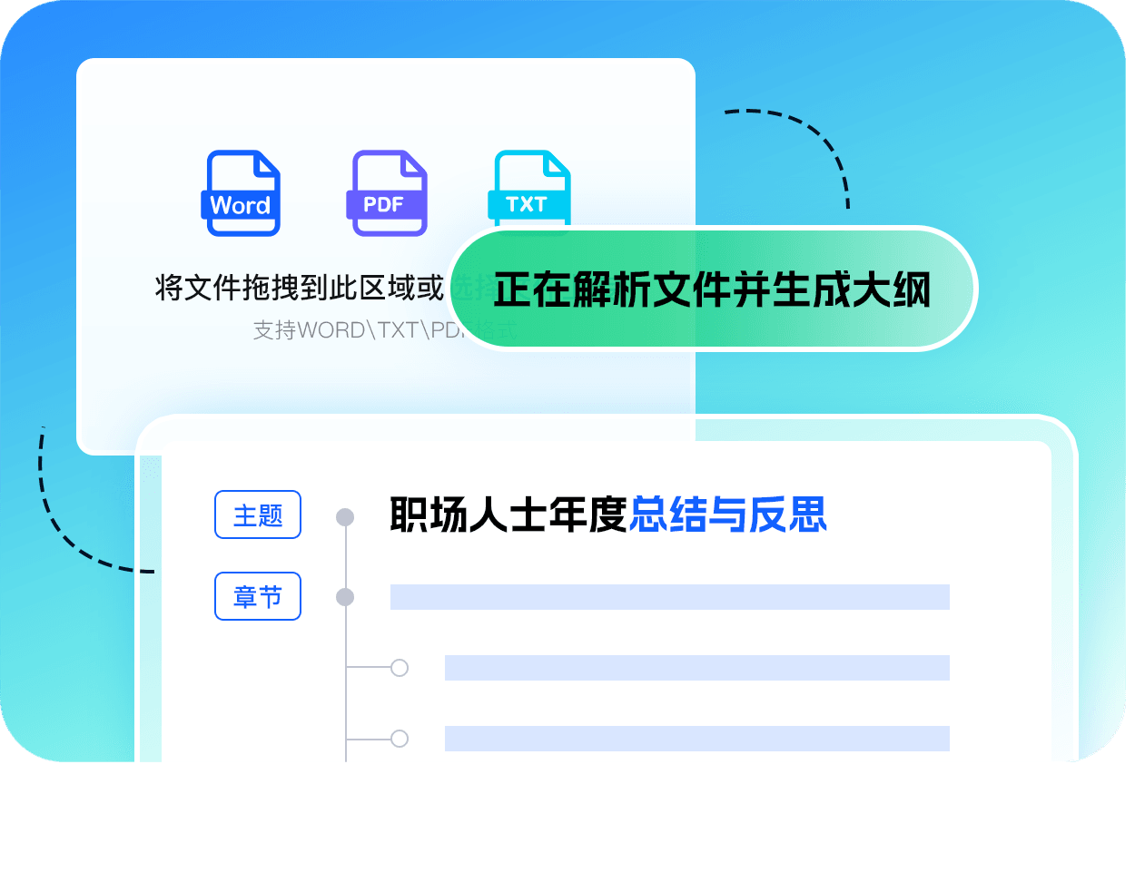 导入文件,PPT自动生成。Word、PDF、TXT等文档一键转为PPT,让 PPT制作极速起飞。